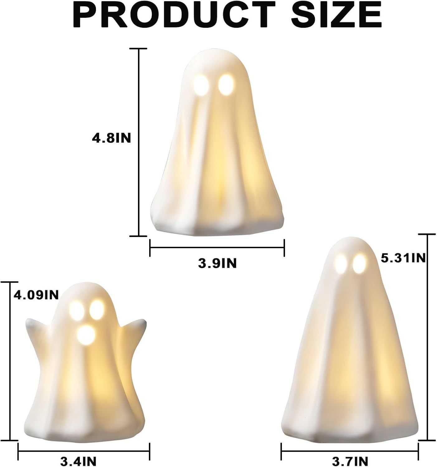Light Up Ghost Halloween Decor, 3 Pack Ceramic Halloween Ghost Decorations Indoor