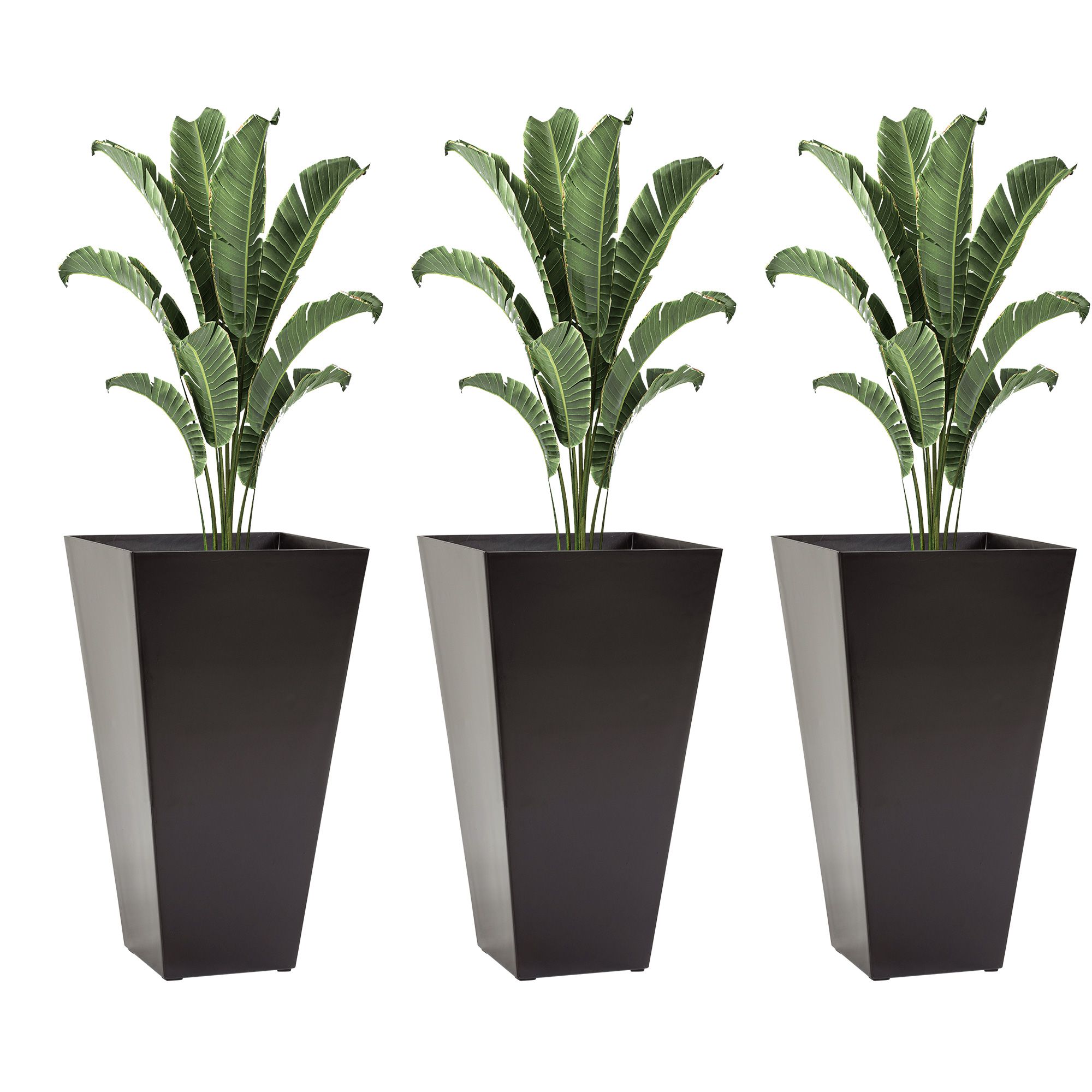 Home > Outsunny 28ft Tall Plastic Planters, Set of 3, square Flower Pot, anti-crack, fade-resistant, Outdoor & Indoor, for lawns, patios, Brown