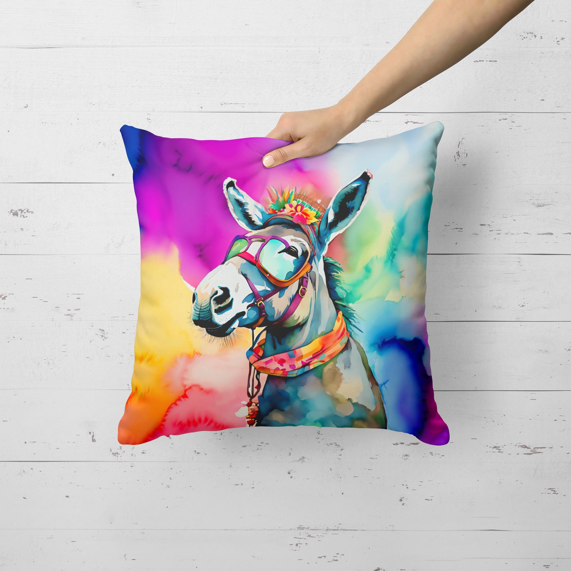 NEW Hippie Animal Donkey Throw Pillow Machine Washable, Indoor Outdoor Decorative Pillow for Couch, Bed or Patio, 18Hx18W