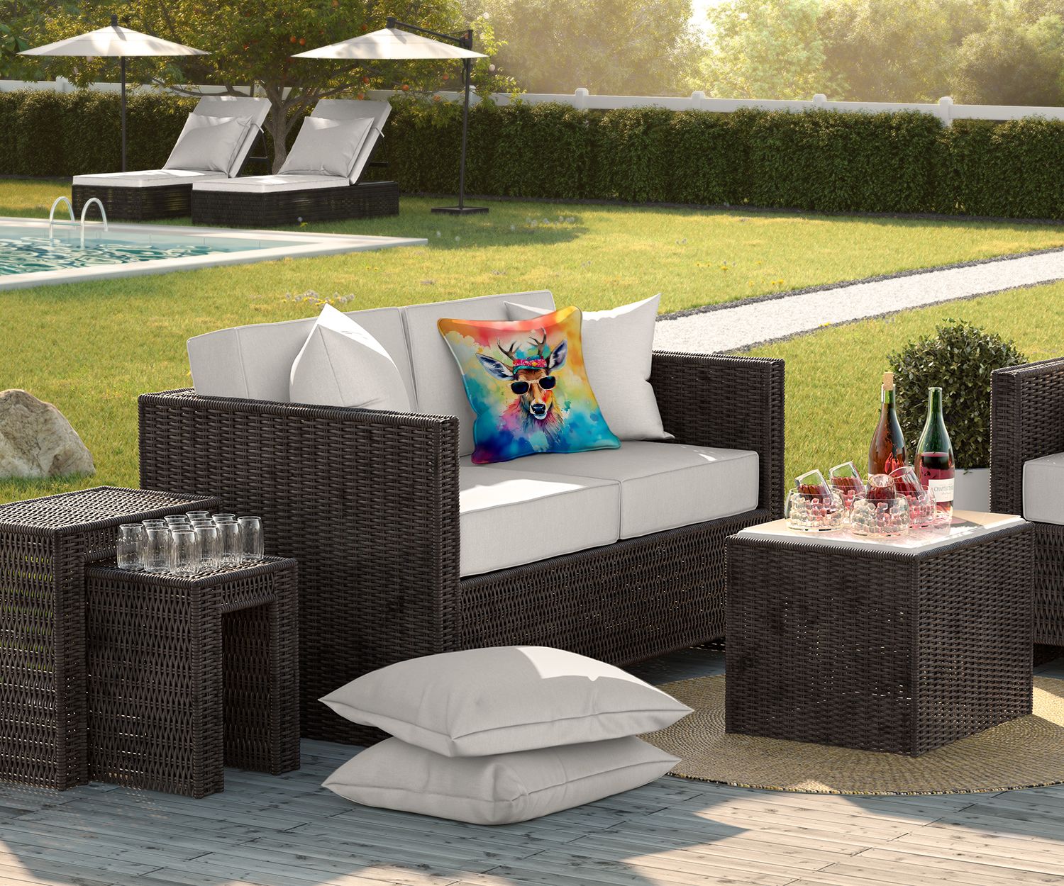 NEW Hippie Animal Deer Throw Pillow Machine Washable, Indoor Outdoor Decorative Pillow for Couch, Bed or Patio, 18Hx18W
