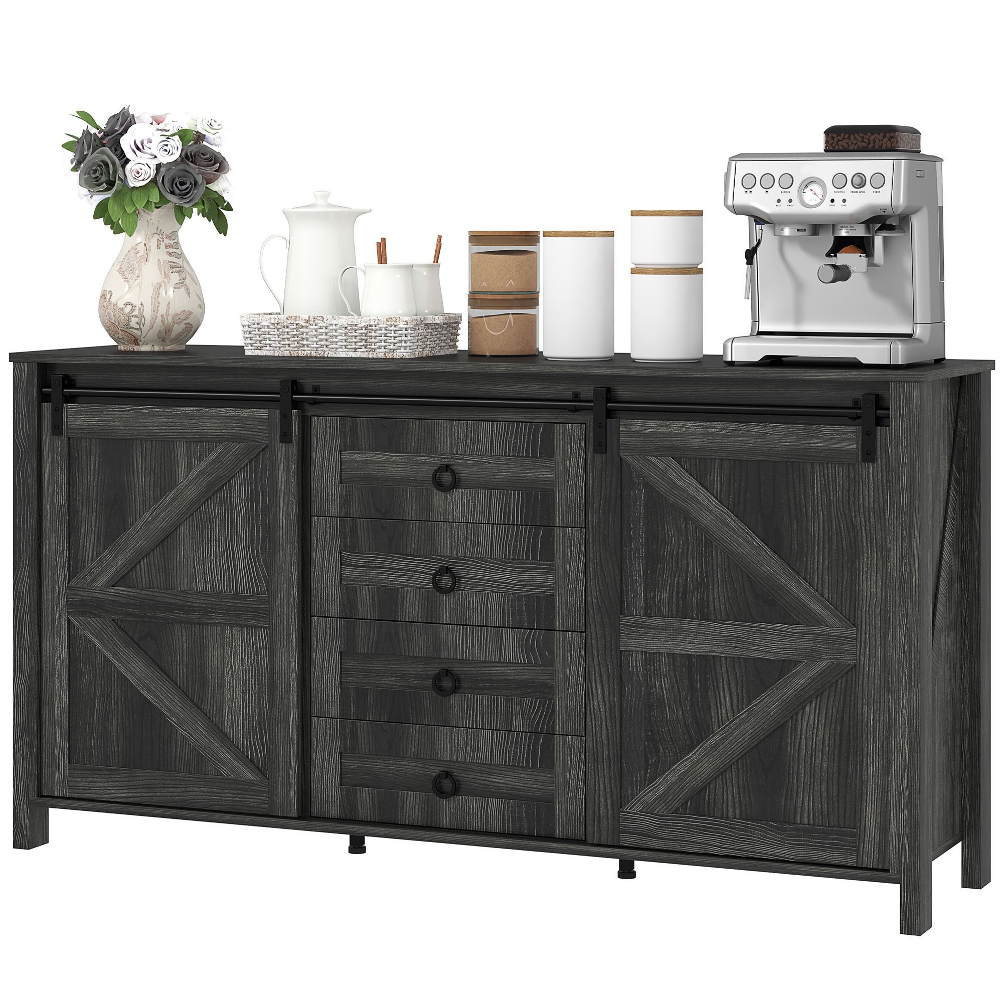 HOMCOM 60" Buffet Cabinet, Farmhouse Sideboard with Sliding Barn Doors, Drawers and Adjustable Shelves, Distressed Dark Gray HOMCOM 60" Buffet Cabinet, Farmhouse Sideboard with Sliding Barn Doors, Drawers and Adjustable Shelves, Distressed Dark Gray HOMCOM 60" Buffet Cabinet, Farmhouse Sideboard with Sliding Barn Doors, Drawers and Adjustable Shelves, Distressed Dark Gray