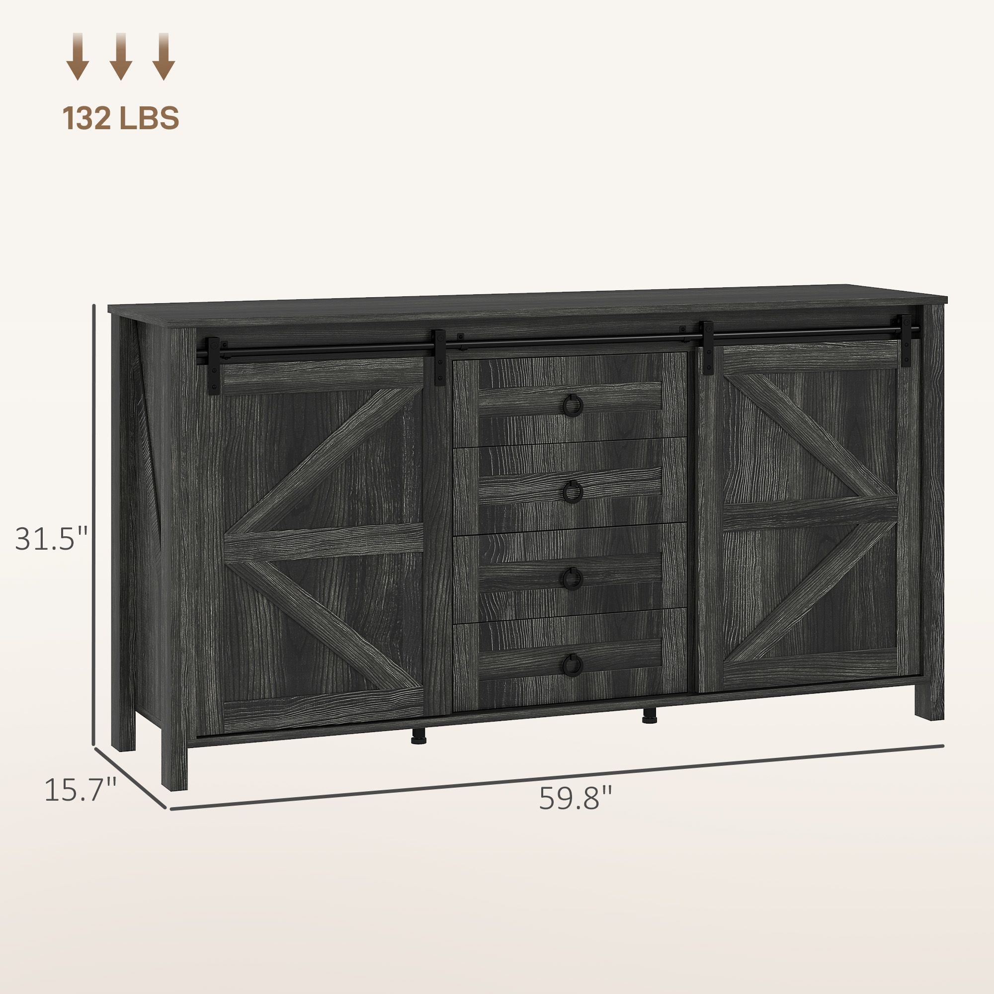 HOMCOM 60" Buffet Cabinet, Farmhouse Sideboard with Sliding Barn Doors, Drawers and Adjustable Shelves, Distressed Dark Gray