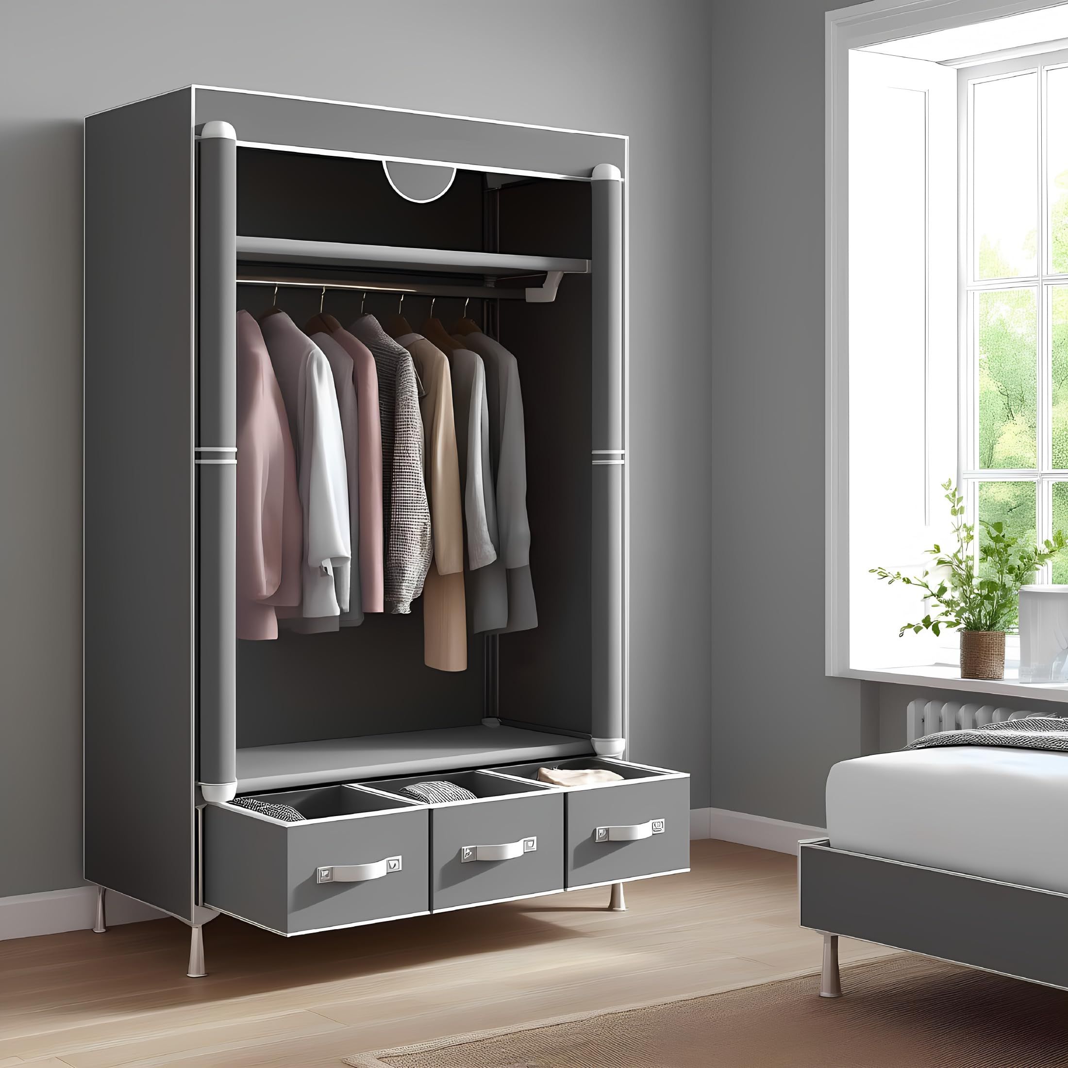 Portable Wardrobe 67×35.4×17.7in (Gray) - Rolling Door, Hanging Rack, Non - Woven Fabric Storage & 3 Drawer Boxes, Tool - free Setup Portable Wardrobe 67×35.4×17.7in (Gray) - Rolling Door, Hanging Rack, Non - Woven Fabric Storage & 3 Drawer Boxes, Tool - free Setup Portable Wardrobe 67×35.4×17.7in (Gray) - Rolling Door, Hanging Rack, Non - Woven Fabric Storage & 3 Drawer Boxes, Tool - free Setup