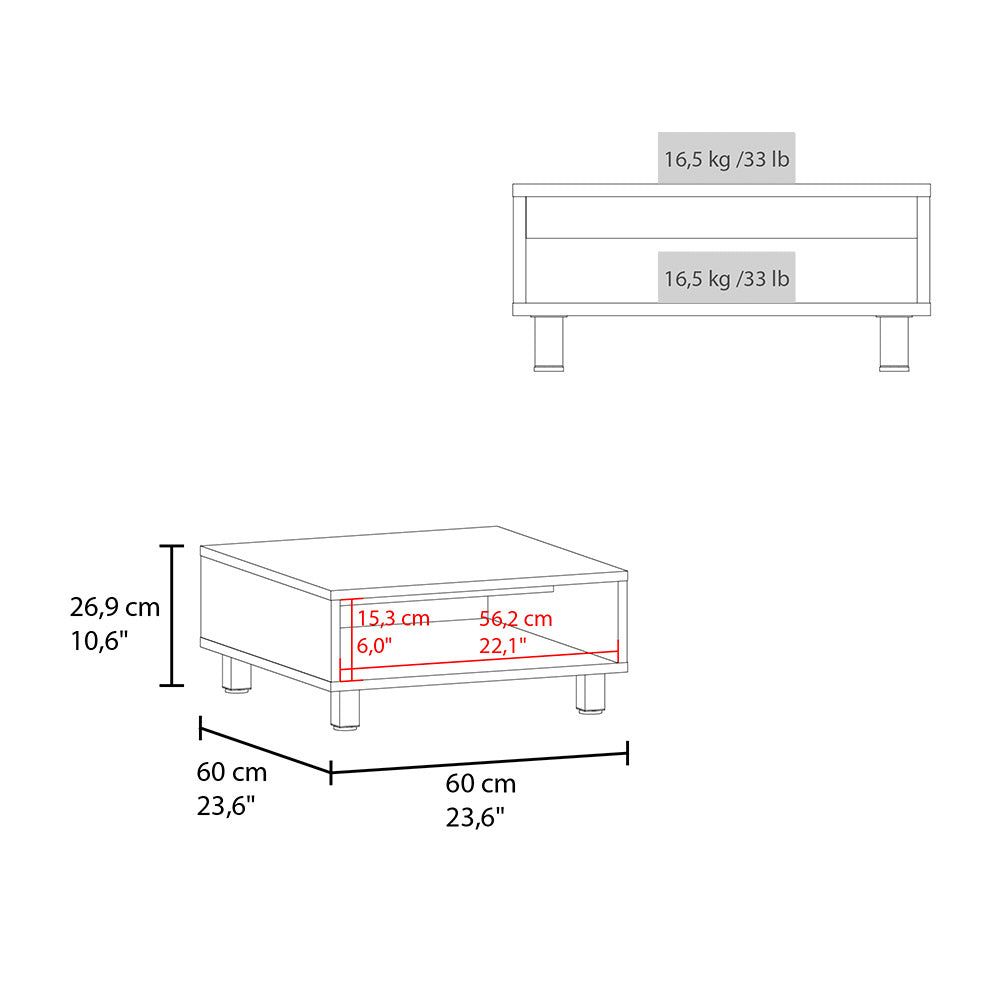 The Burley Coffee Table is the perfect fusion of style and functionality for your living room. Crafted from durable white manufactured wood, this coffee table features a clean, minimalist design that complements modern and contemporary interiors. The open lower shelf (6"H x 22.1" W) is ideal for storing books, magazines, or decor items, while the sturdy metallic legs provide stability and a stylish contrast to the sleek white finish. Its open design creates an airy feel, making it a perfect centerpiece for your living room. Elevate your space with this modern coffee table that combines form and function beautifully.Dimensions: Height: 10.6'Width: 23.6' Depth: 23.6'