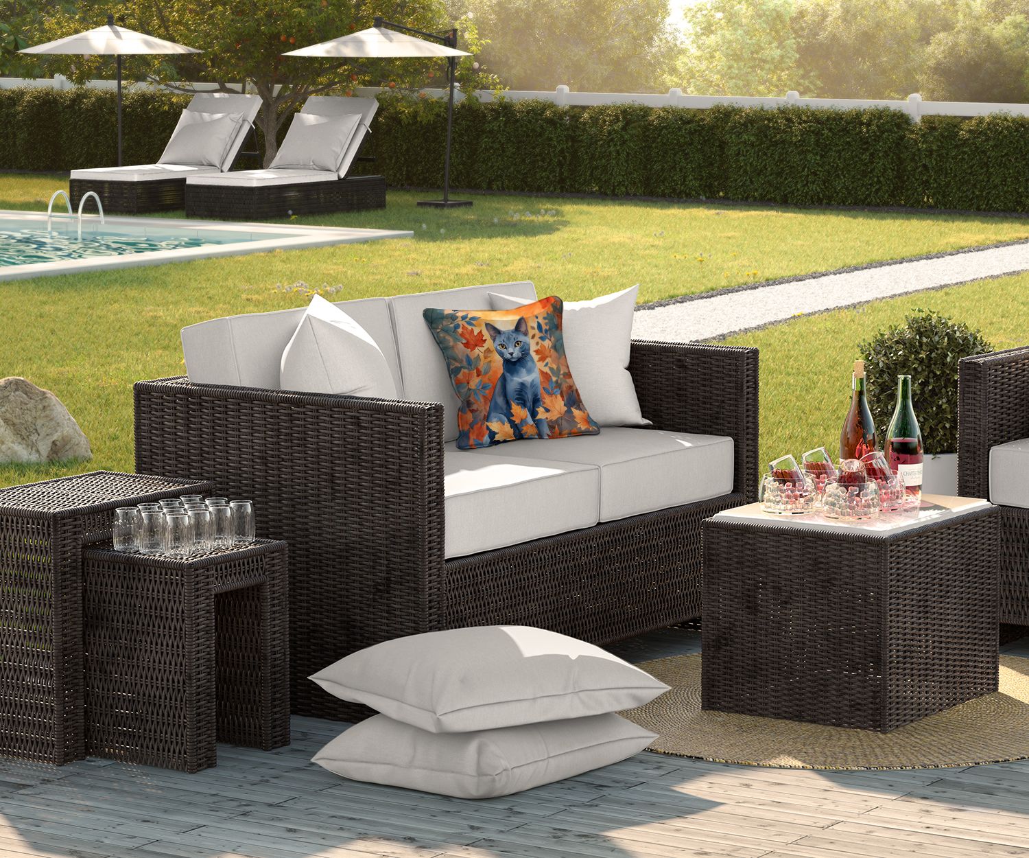 Home > Russian Blue Cat in Fall Leaves Throw Pillow Machine Washable, Indoor Outdoor Decorative Pillow for Couch, Bed or Patio, 18Hx18W