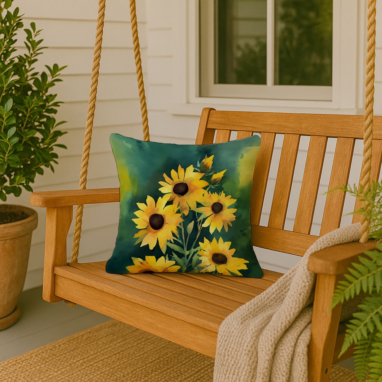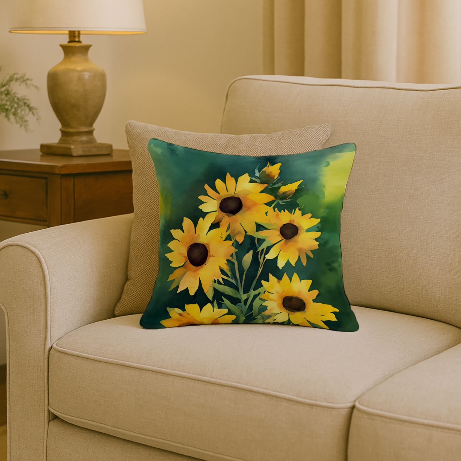 Kentucky Goldenrod in Watercolor Throw Pillow Machine Washable, Indoor Outdoor Decorative Pillow for Couch, Bed or Patio, 18Hx18W