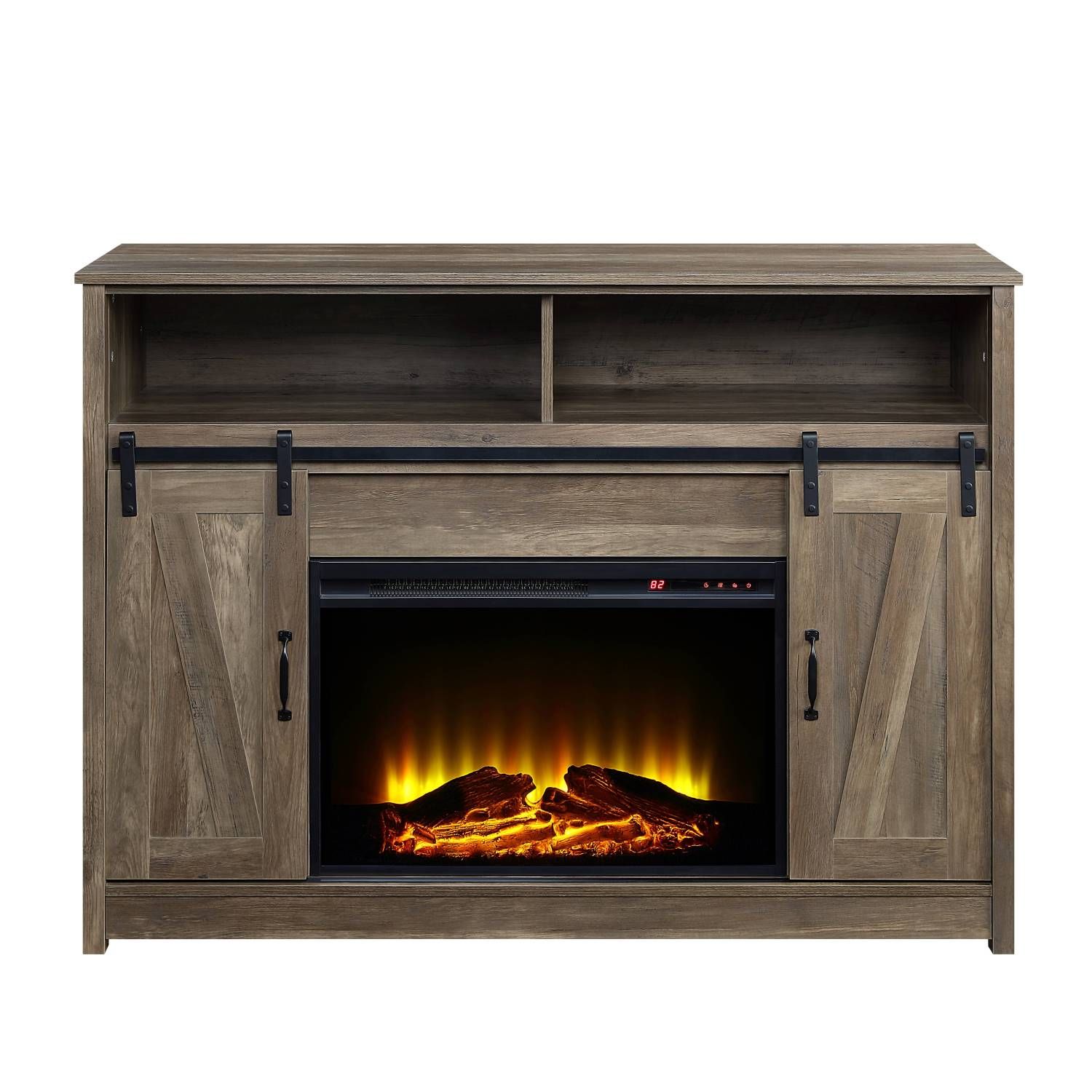 Rectangular TV Stand, Storage: 2 Door Storages & 2 Open Compartments, Sliding Barn Door