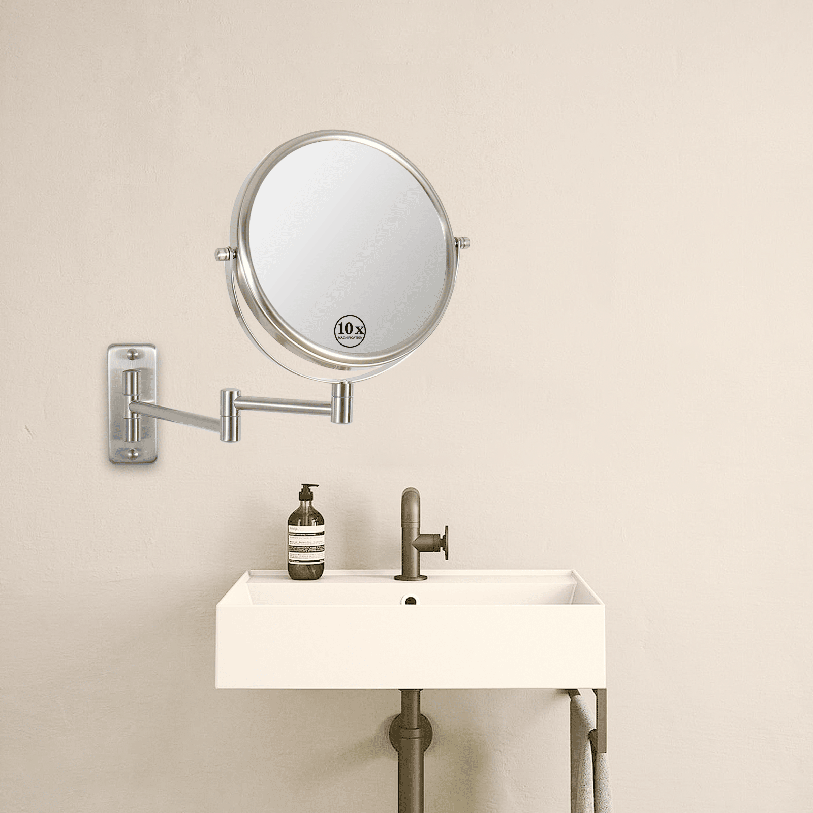 8-inch Wall Mounted Makeup Vanity Mirror, 1X / 10X Magnification Mirror, 360° Swivel with Extension Arm 8-inch Wall Mounted Makeup Vanity Mirror, 1X / 10X Magnification Mirror, 360° Swivel with Extension Arm 8-inch Wall Mounted Makeup Vanity Mirror, 1X / 10X Magnification Mirror, 360° Swivel with Extension Arm