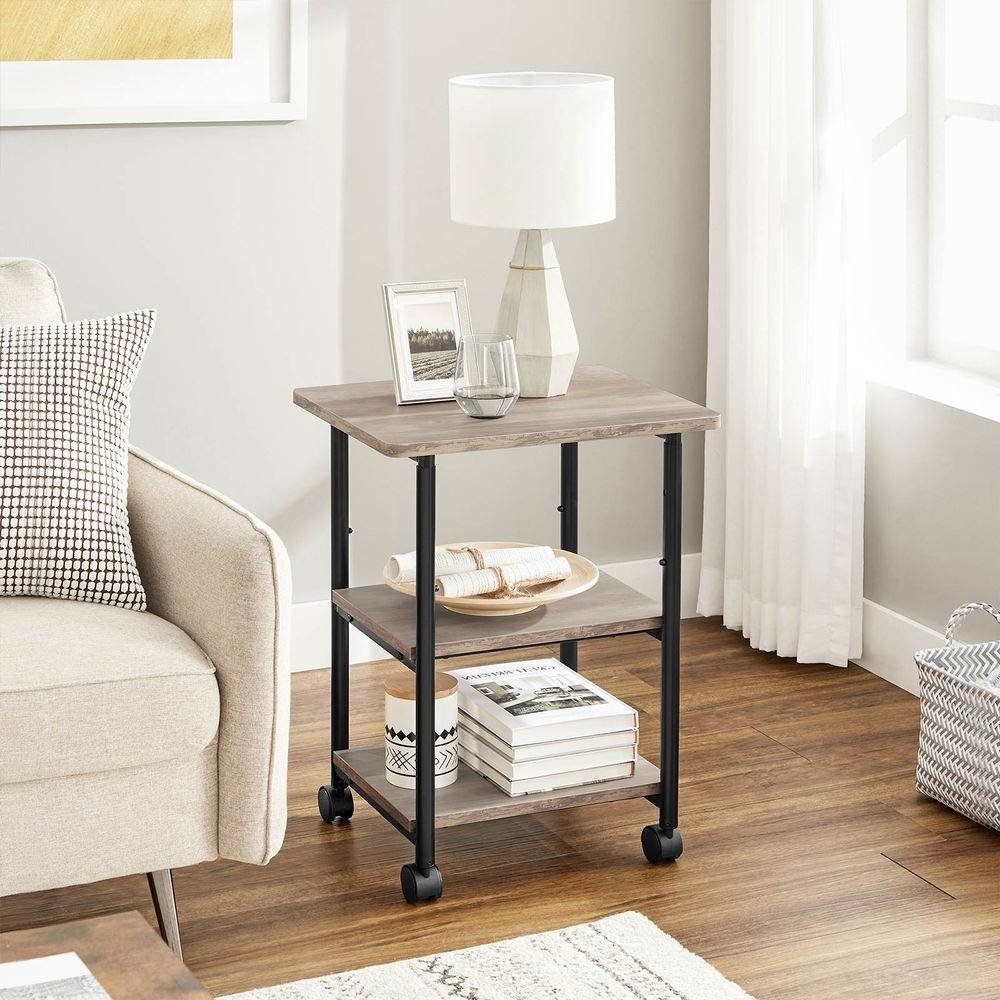 Modern Industrial Black Metal Grey Wood Printer Stand Shelf Cart