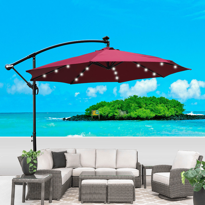[Energy-Efficient Lighting]: The patio umbrella has 24 solar-powered LED lights that will light up your terrace when night falls. Soft lighting creates a romantic atmosphere for you. All LED bulbs are powered by solar panels at the top to save energy while maintaining perfect lighting.