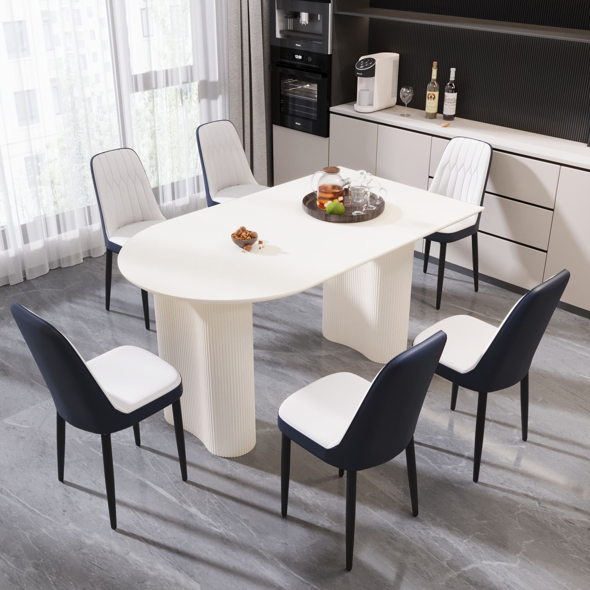 63 "medieval modern cream style MDF dining table and PU dining chair set 4. Assemble Desktop and black metal leg dining chair set 63 "medieval modern cream style MDF dining table and PU dining chair set 4. Assemble Desktop and black metal leg dining chair set 63 "medieval modern cream style MDF dining table and PU dining chair set 4. Assemble Desktop and black metal leg dining chair set