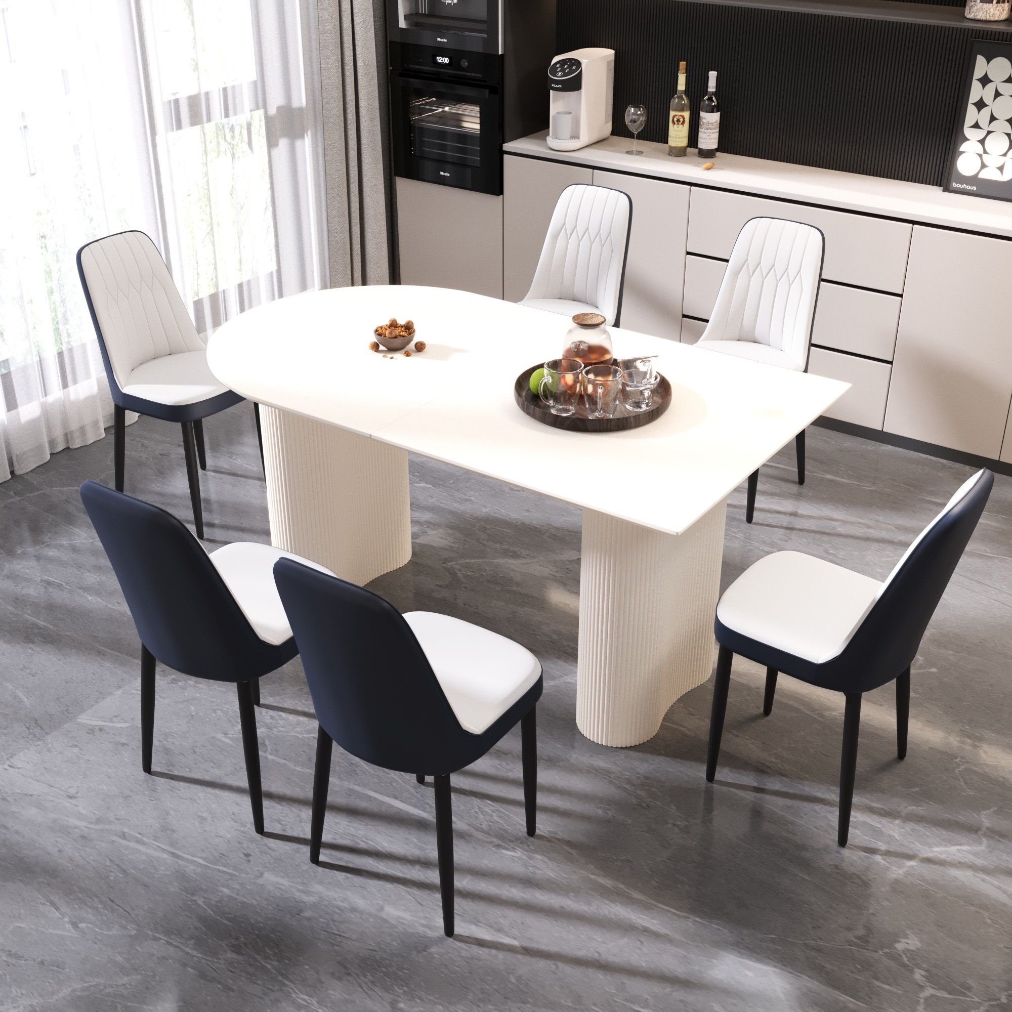 1.Modern Fashion Industrial Design Dining Table: With its fashionable and modern design, this dining table complements various interior styles from modern to traditional. And comfortable seats that can accommodate 4 to 8 people are the ideal choice for large families or entertaining guests.