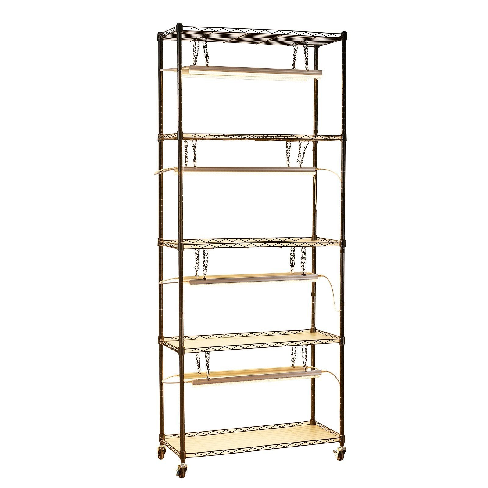 2.Full-Spectrum LED Lights: The indoor plant stand includes 8pcs of 36W T5 LED grow lights (23.23 in each). Each light has an independent switch, giving plants tailored lighting. High light transmission and wide coverage provide optimal light for every growth stage.