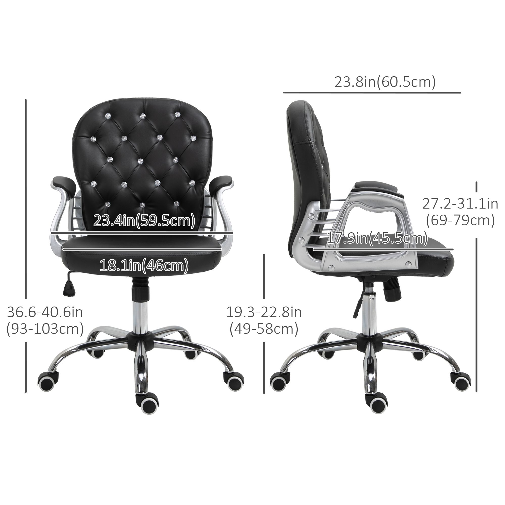 Try out this computer chair from Vinsetto provides comfort and mobility during your work. Featuring decorative crystal on the back, upholstered tufting with PU leather and solid electroplated legs, the office chair brings a bit of vanity appeal to your look. It blends easily with a variety of decor and can fit into any room. Take your productivity to the next level with the task chair that brings out your very great performance.