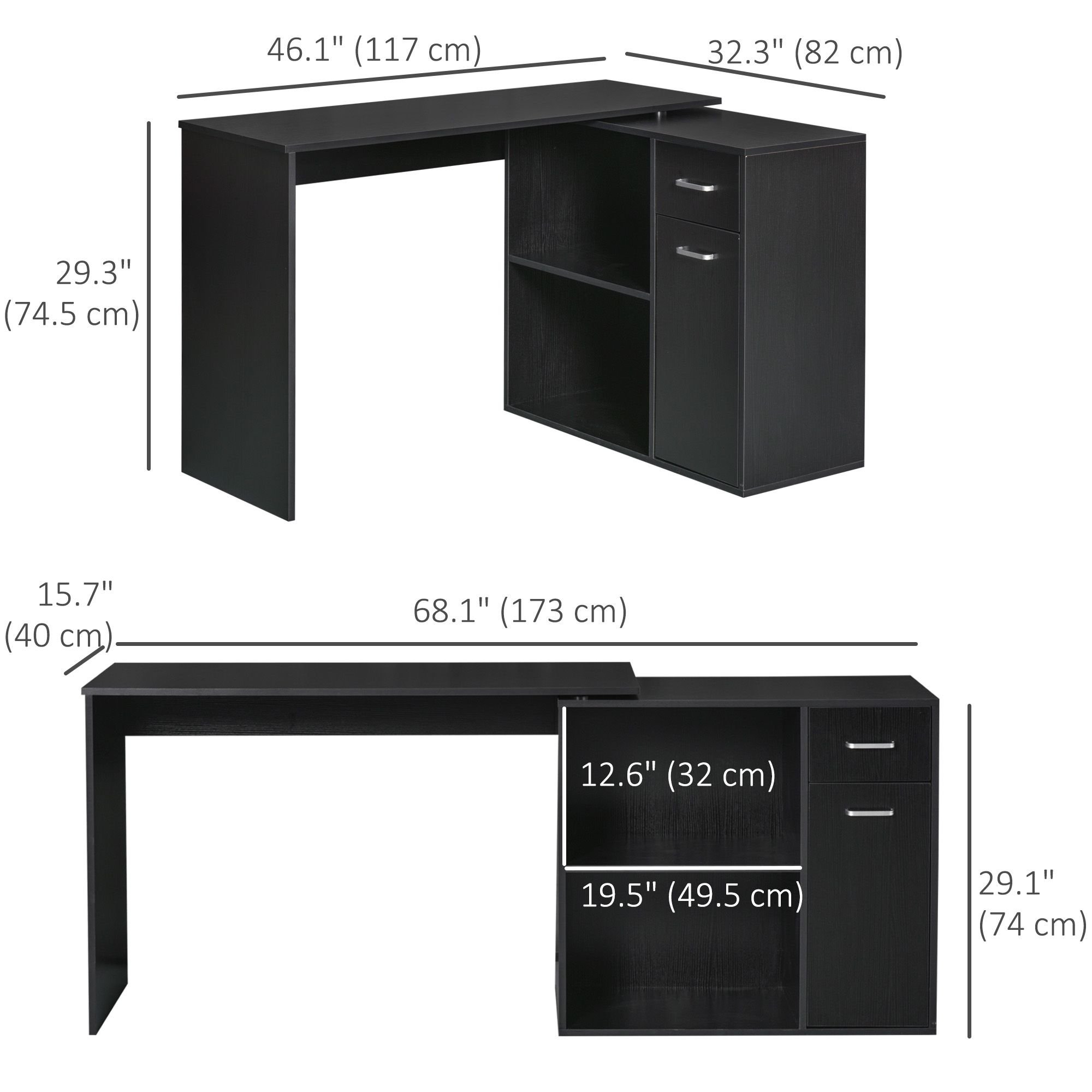 Home > 180° Rotating Home Office Corner Desk Storage Shelf Cabinet Black
