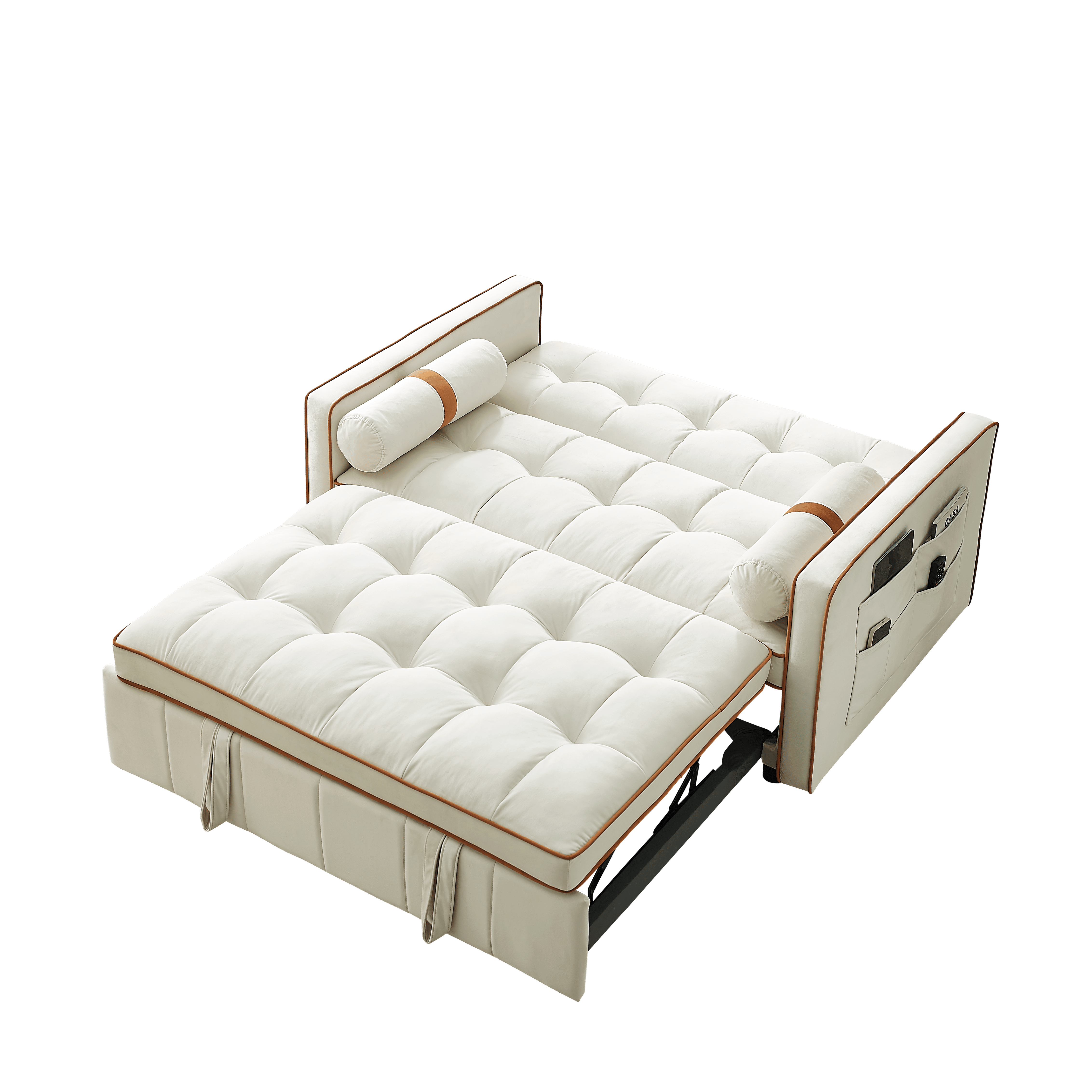 Modern 55.5" Pull Out Sleep Sofa Bed 2 Seater Loveseats Sofa Couch with side pockets