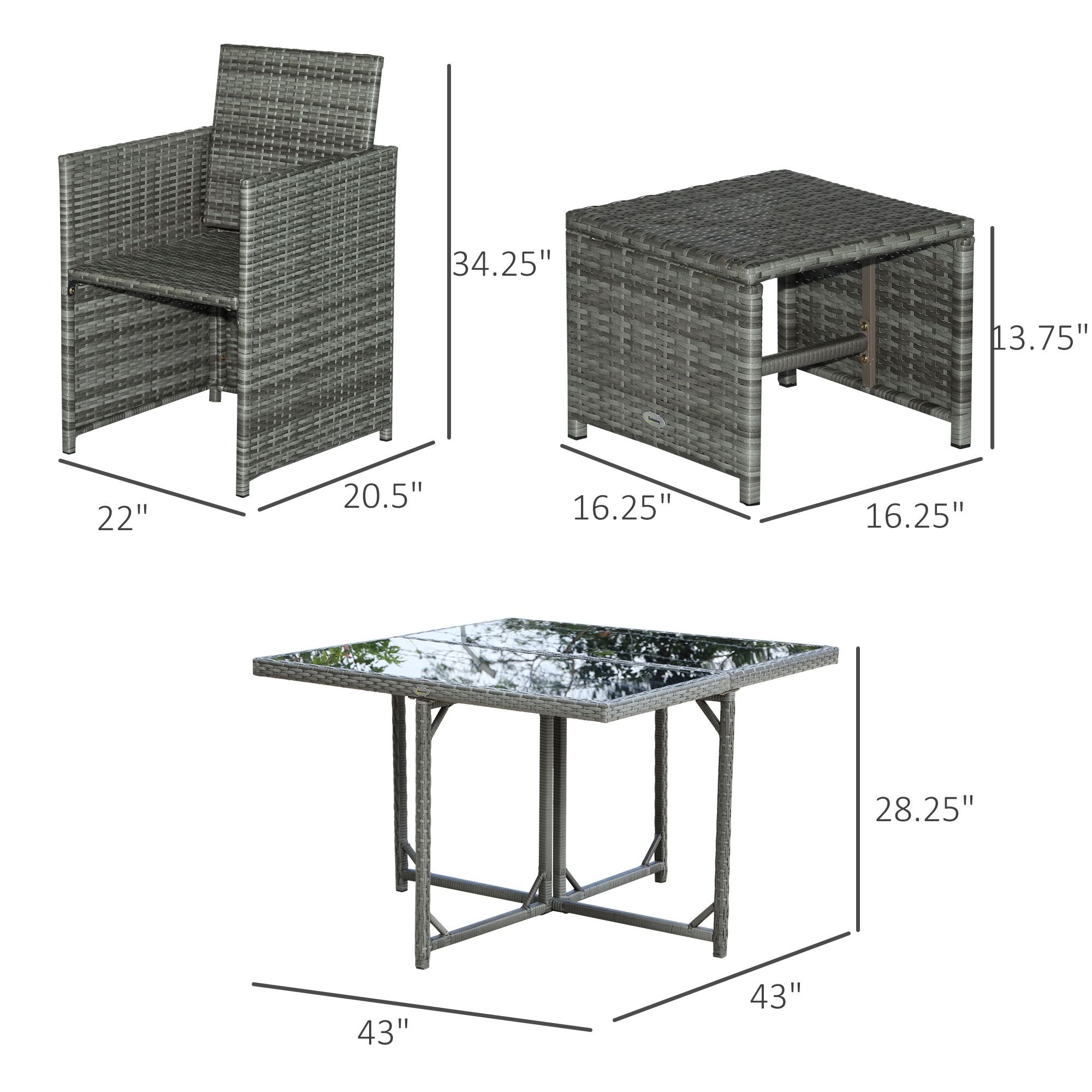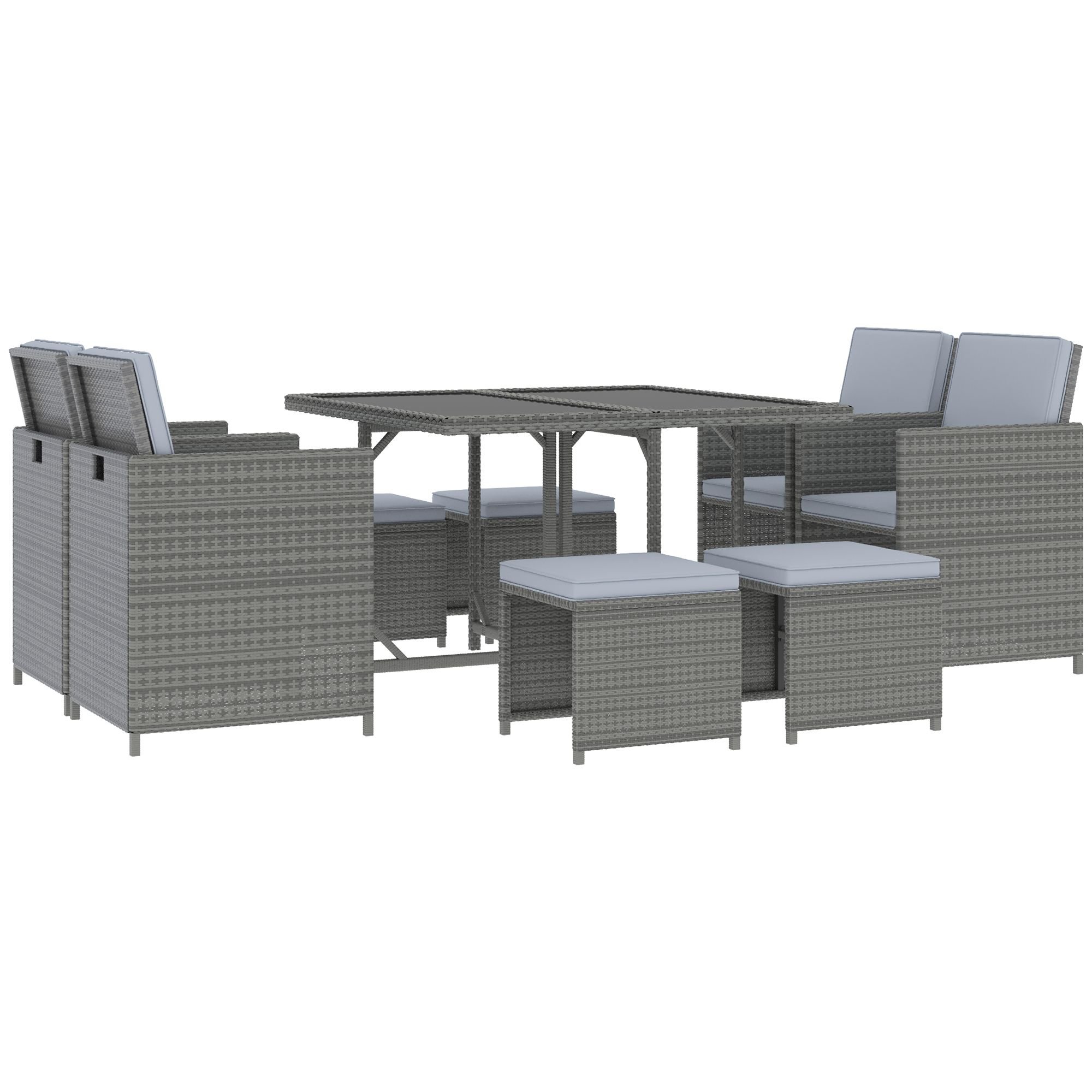 Home > 9 Piece Outdoor Rattan Wicker Dining Table and Chairs Furniture Set Space Saving Wicker Chairs w/ Cushions - Gray