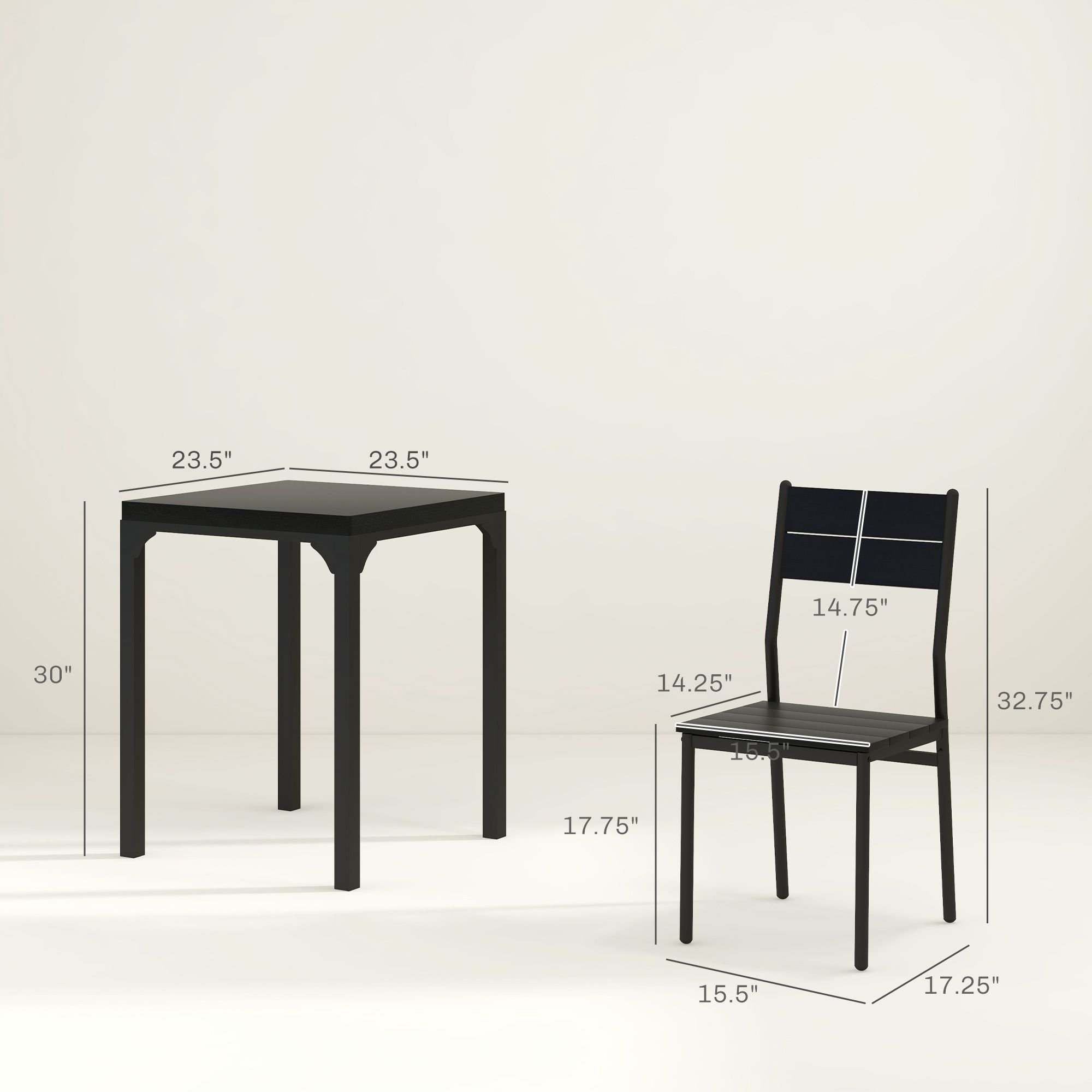 3 Piece Dining Set, 23.5" Square Table with 2 Chairs, Space Saving for Small Apartment, Black