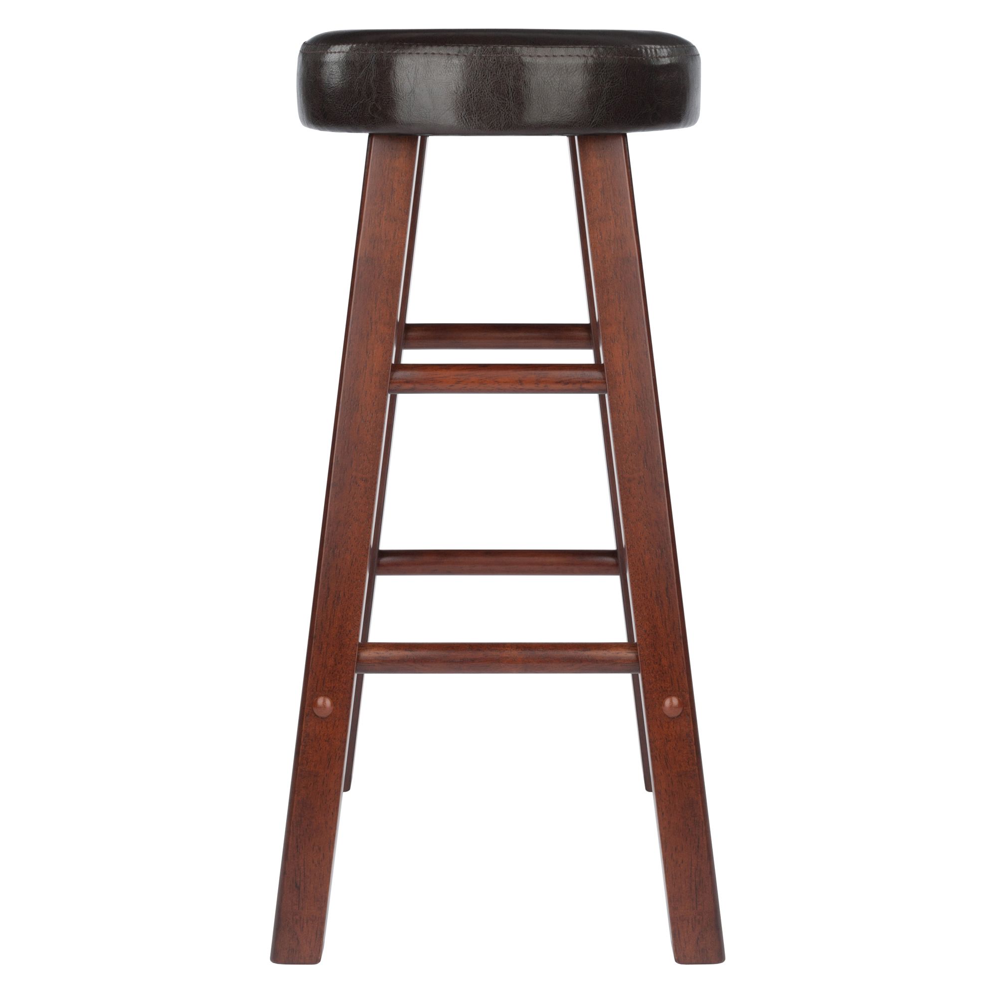 Linger over dinner or work at your home desk in total comfort with the Maria 2-PC Counter Stool Set. The stools have a 2.76" thick cushion seat covered in faux leather; providing maximum comfort for your seating. The frame is made of Solid Wood in a rich Walnut finish that complements the Espresso faux leather; a subtle and handsome combination that will suit any decor from modern to rustic cottage. The construction boasts squared legs with 8 crossbars which give stability and strength while also serving as convenient footrests. With round 12.2" seats; use the set at a counter height table; for extra seating when guests arrive; or at work in your home office. The set ships in 1 box that includes the hardware needed for assembly. Also available in a 29" Bar Stool height.