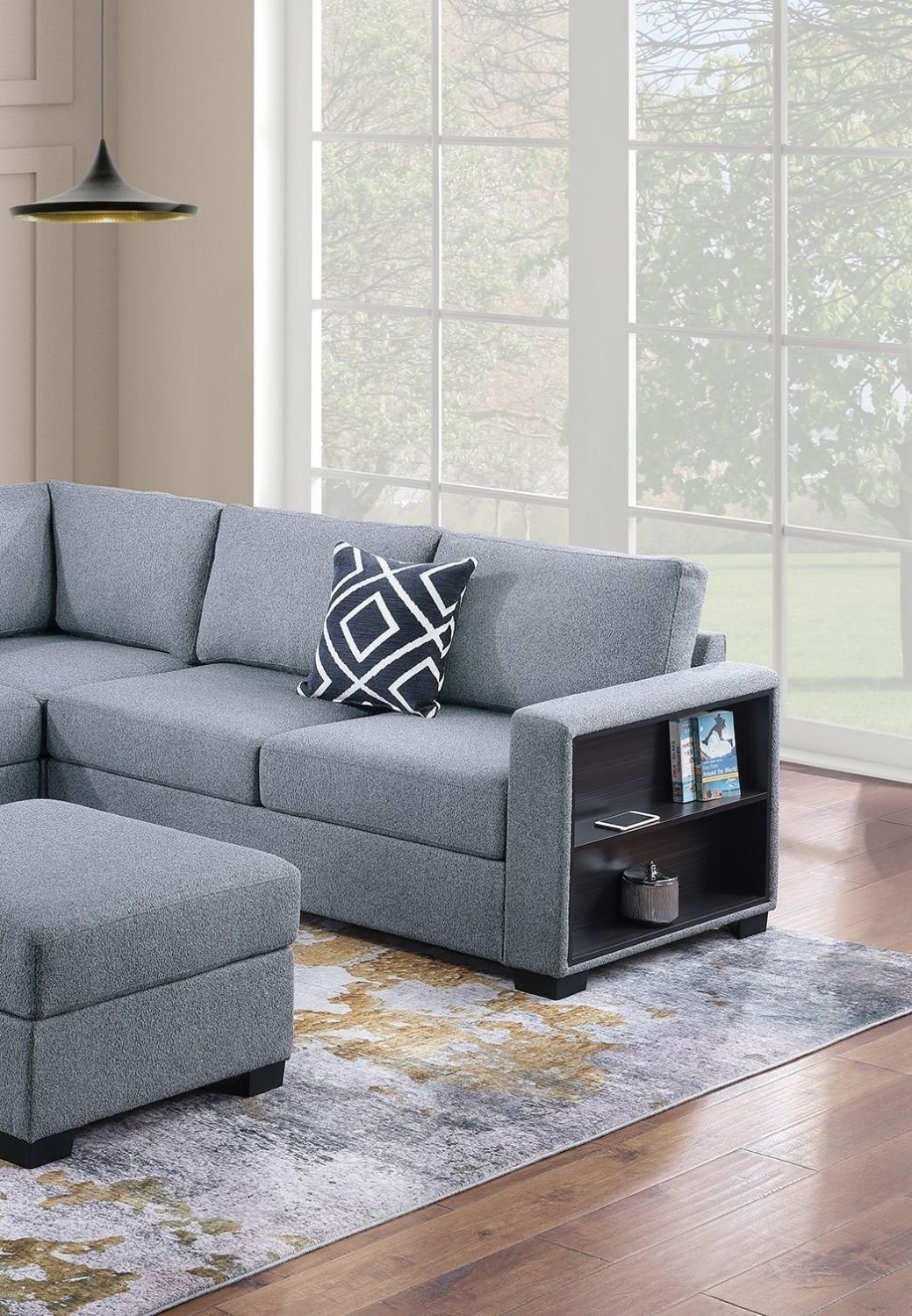 Contemporary Functional Sectional Sofa 4pc Set Gray Boucle Couch Loveseat w Built-in Shelfs Wedge, Ottoman Living Room Furniture L-Shaped Design Couch Contemporary Functional Sectional Sofa 4pc Set Gray Boucle Couch Loveseat w Built-in Shelfs Wedge, Ottoman Living Room Furniture L-Shaped Design Couch Contemporary Functional Sectional Sofa 4pc Set Gray Boucle Couch Loveseat w Built-in Shelfs Wedge, Ottoman Living Room Furniture L-Shaped Design Couch