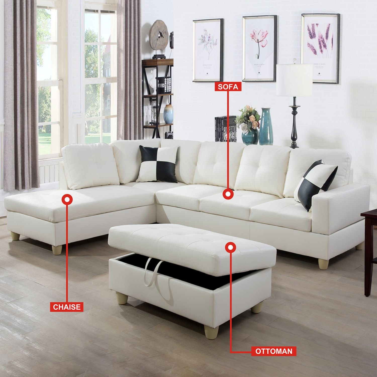 White Faux Leather 3-Piece Couch Living Room Sofa Set White Faux Leather 3-Piece Couch Living Room Sofa Set White Faux Leather 3-Piece Couch Living Room Sofa Set