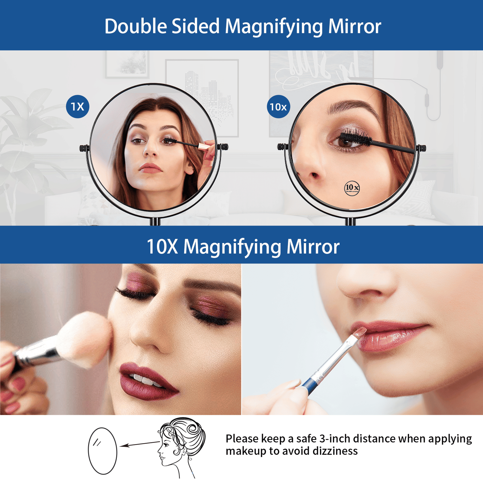 DOUBLE MAGNIFICATION FUNCTION: The mirror is equipped with 1x and 10x magnification function, which enables you to view the details of your skin in real time, whether you are performing detailed makeup or cleansing your facial skin, it provides better visual assistance.